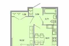 Жилая площадь 15.6 м2, кухня 9.3 м2, чистовая отделка, комнаты изолированные, балконов - 1.