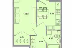 Жилая площадь 17.1 м2, кухня 8.8 м2, чистовая отделка, комнаты изолированные, лоджий - 1.