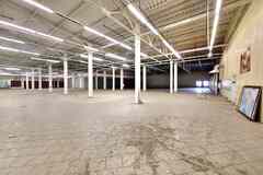 Большие подъемные ворота, нулевой уровень. Территория для разгрузки автотранспорта заасфальтирована.