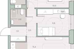 Жилая площадь 21.1 м2, кухня 5.5 м2, предчистовая отделка, комнаты изолированные.