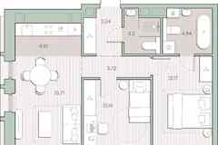 Жилая площадь 38.8 м2, кухня 6.4 м2, предчистовая отделка, комнаты изолированные.