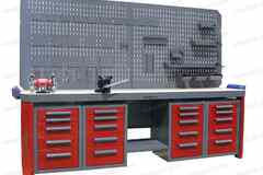 Металлический верстак автослесаря KronVuz TBW 522 представляет собой базовую комплектацию изделия с большой тумбой с распашными дверцами и пятью выдвижными ящиками. Цельносварной стальной каркас и столешница из фанеры 24мм позволяют изделию выдерживать нагрузки вплоть до 6000 кг. Максимальная нагрузка на выдвижной ящик - 50кг. Габаритные размеры верстака (ДхШхВ) - 2000х875х900мм. Такой верстак отлично подойдет для оборудования СТО или автомобильной мастерской.