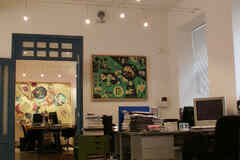 Вход в офис - общий с улицы, в офисе центральное кондиционирование, вентиляция офиса - приточная, автономное отопление, пожарная сигнализация.