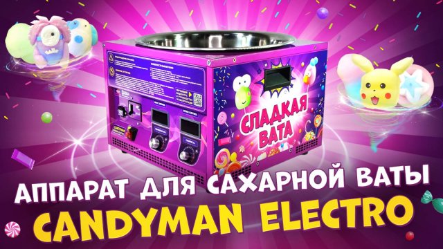 Профессиональный электрический аппарат CANDYMAN™ ELECTRO с вертикальной подачей - идеальное решение для производства фигурной, разноцветной и классической сладкой ваты!