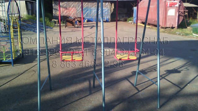 Наша Компания производит различные детские качели - одноместные или двухместные,стандартные детские качели с одним или двумя сиденьями.Каркас детских качелей для улицы изготовлен из металлической трубы диаметром 40x3 мм.Наши детские качели для дачи окрашиваются антикоррозийными порошковыми красками разных цветов.Также по желанию покупателя мы сможем окрасить детские качели в разные цвета - красный,синий,зеленый,желтый,оранжевый,которые не боятся атмосферных осадков в виде дождя и снега,высокой влажности влажности воздуха,и ярких солнечных лучей.Сиденья со спинкой обеспечат мягкую посадку на детские качели,и детям будет удобно и комфортно кататься на качелях.Купить детские качели в Таганроге,Ростове-на-Дону,Краснодаре,Ставрополе по цене 32 000 рублей!Ждем Ваших покупок и предложений!С Уважением Компания МеталлАгроСнаб!