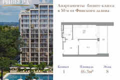 Квартира располагается на 10 этаже 12-этажного дома в ЖК МФК Морская ривьера.
